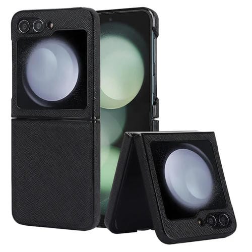 Estuche para Teléfono Samsung Galaxy Z Flip5 5G Plegable con Patrón Cruzado (Negro)