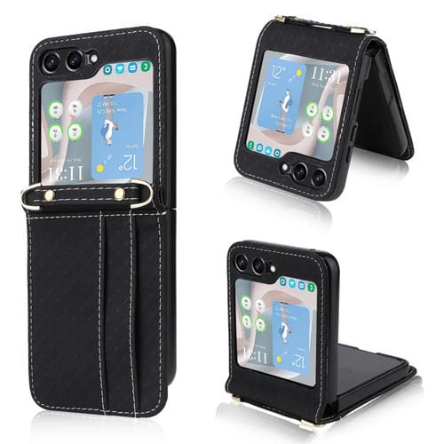 Funda para Teléfono Plegable Samsung Galaxy Z Flip5 Crossbody Diamond Lattice (Negro)