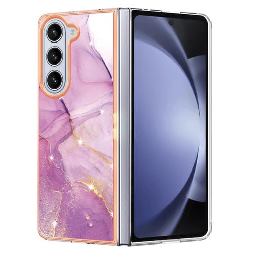 Estuche para Teléfono Samsung Galaxy Z Fold5 5G Imd Doble Cara Mármol Galvanizado (Púrpura)