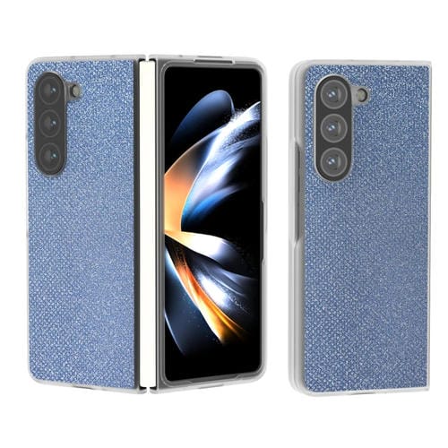 Estuche para teléfono Samsung Galaxy Z Fold5 con borde transparente esmerilado y diamante (Azul)