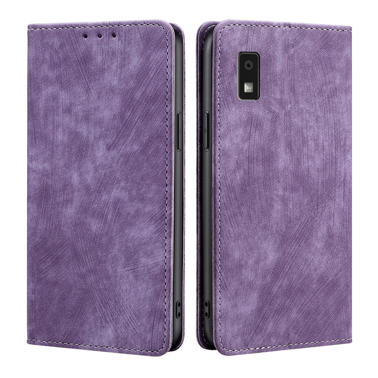 Funda de Cuero Magnética para Sharp Aqous Wish 3 con Protección RFID y Cepillo Antirrobo (Púrpura)