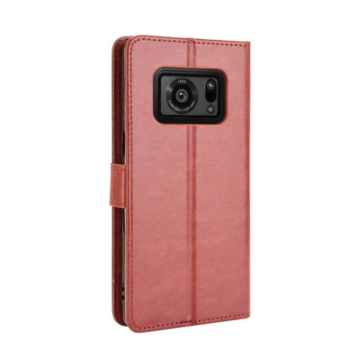Funda de Cuero para Sharp Aquos R6 Crazy Horse Texture con Soporte y Ranuras (Marrón)