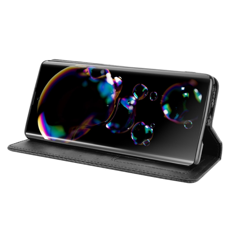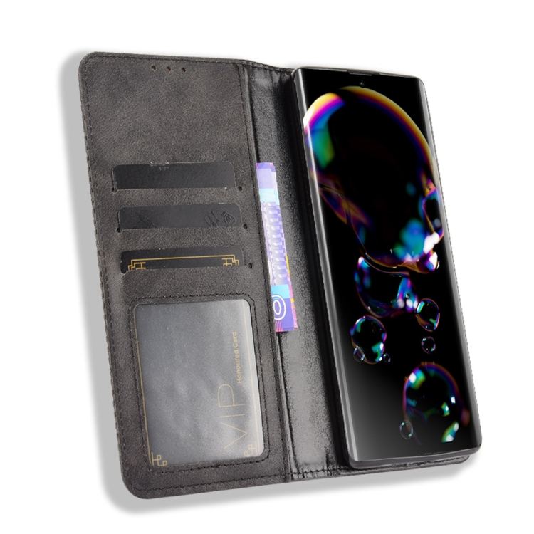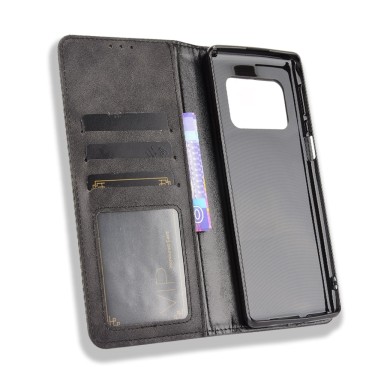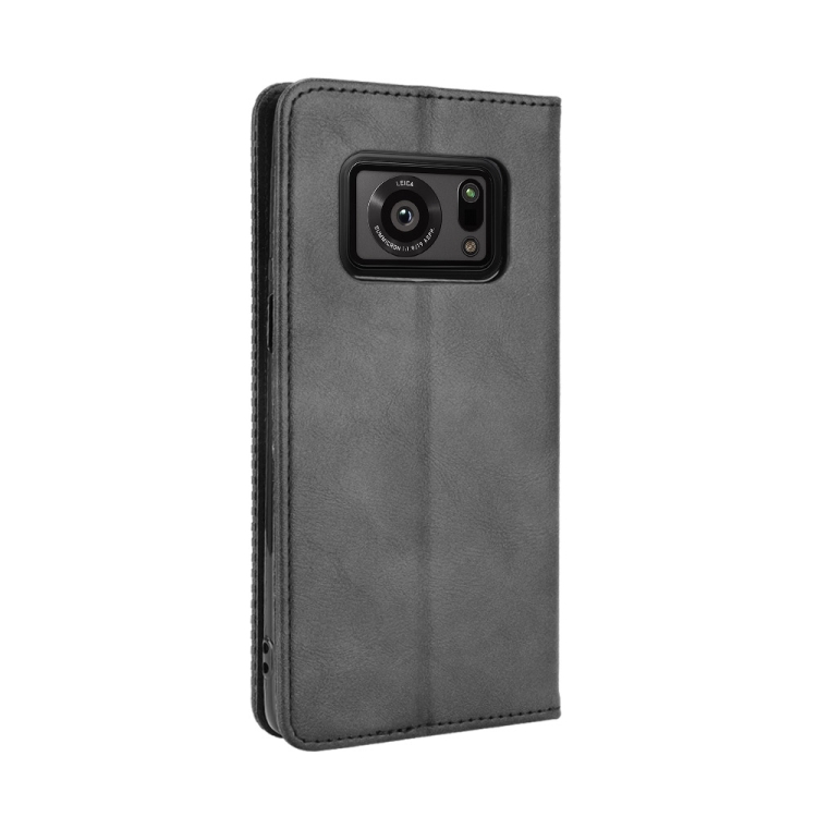 Funda de Cuero para Sharp Aquos R6 Hebilla Magnética Crazy Horse Horizontal Flip con Soporte y Ranuras para Tarjetas (Negro)