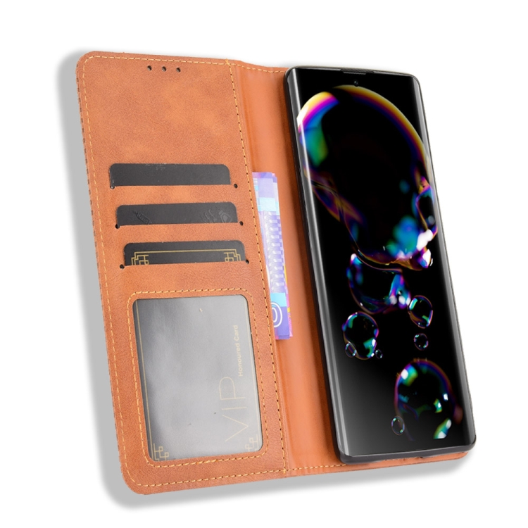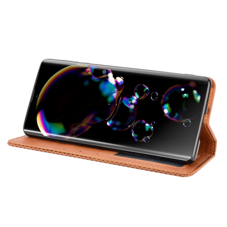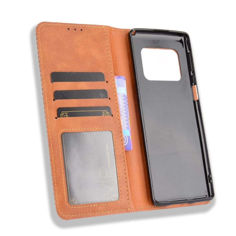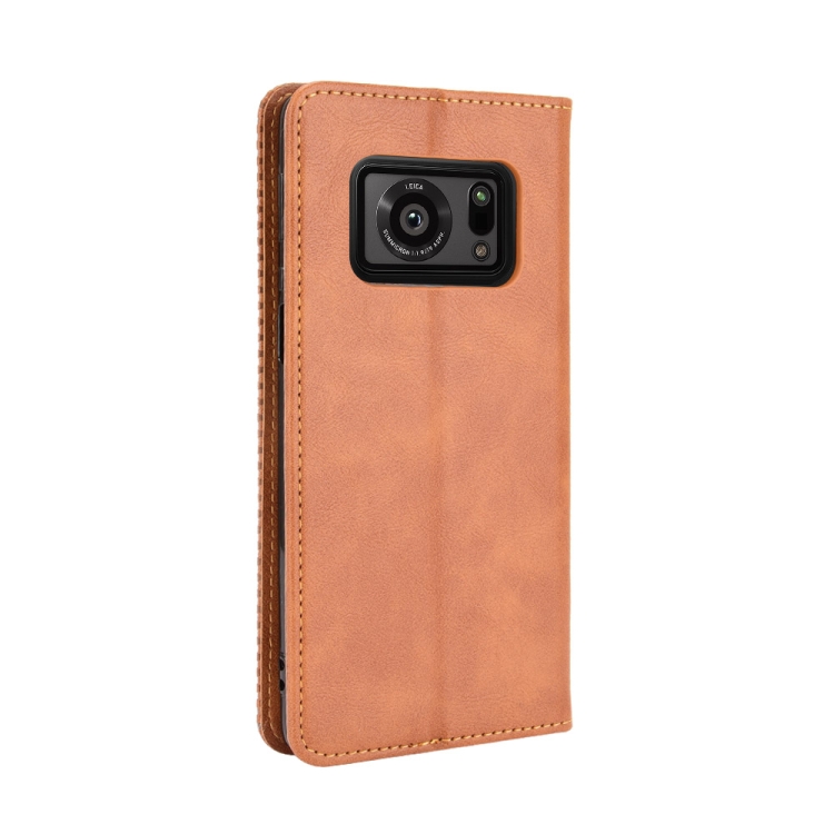 Funda de Cuero para Sharp Aquos R6 con Hebilla Magnética, Soporte, Ranuras y Marco de Fotos (Marrón)