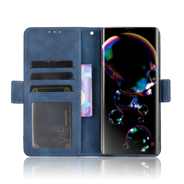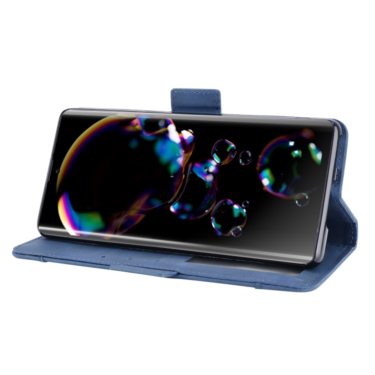 Funda de Cuero para Sharp Aquos R6 con Soporte, Ranuras y Marco de Fotos (Azul)