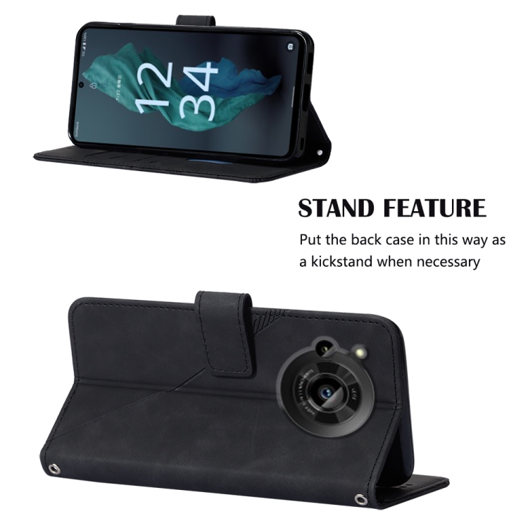 Funda de Cuero para Sharp Aquos R7 / P7 Crossbody 3D con Tapa En Relieve (Negro)