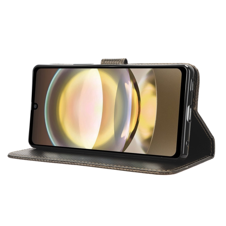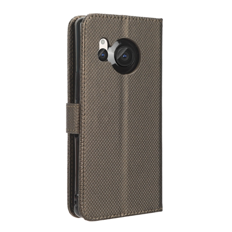 Funda para Sharp Aquos R8 de Cuero con Textura de Diamante (Marrón)
