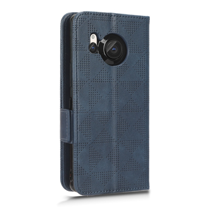Funda de Cuero para Sharp Aquos R8 con Patrón Triángulo Simétrico (Azul)