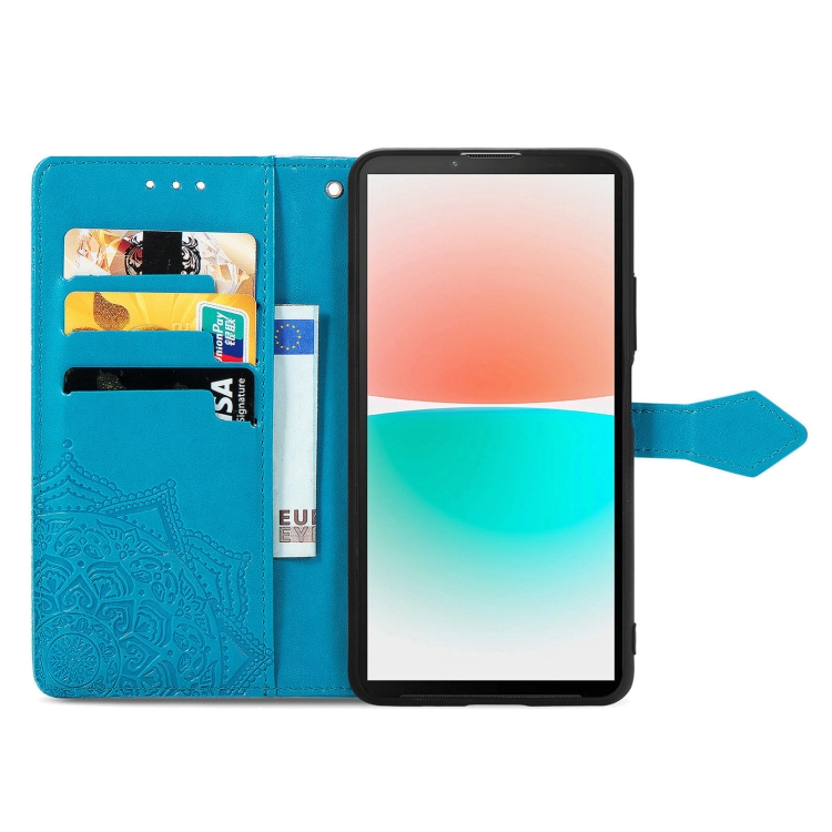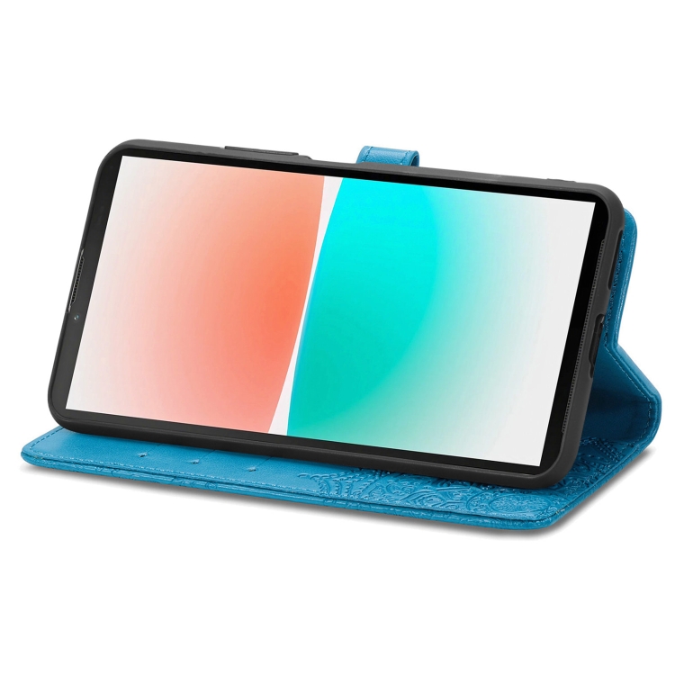 Funda de Cuero para Sharp Aquos R8 Mandala Flower en Relieve para Teléfono (Azul)
