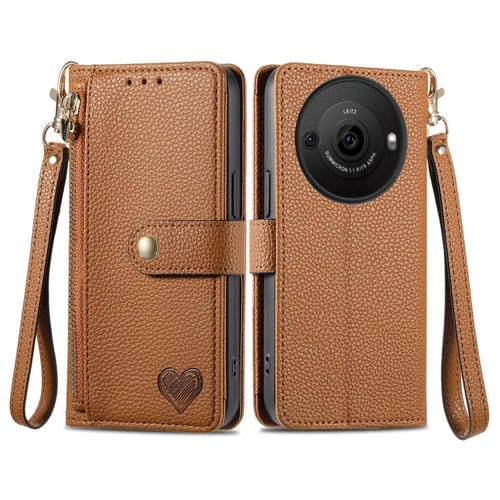 Funda de Cuero para Sharp Aquos R8 Pro Love Zipper con Lanyard (Marrón)