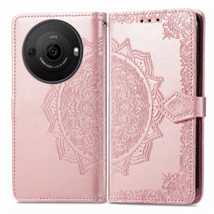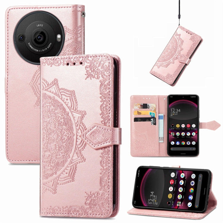 Funda de Cuero para Sharp Aquos R8 Pro Mandala Flower en Relieve (Oro Rosa)