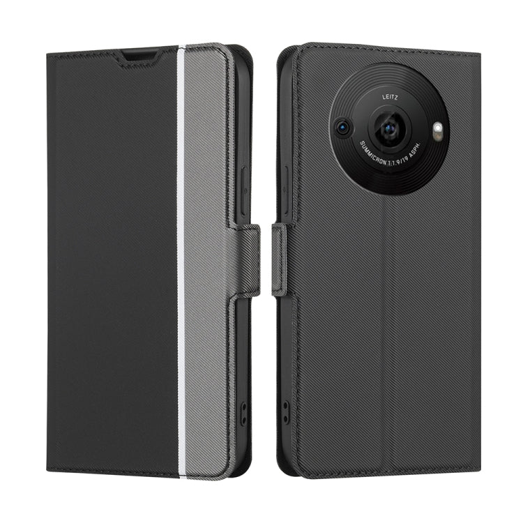 Funda de Cuero para Sharp Aquos R8 Pro Sh-51 con Textura de Sarga y Botón Lateral (Negro)