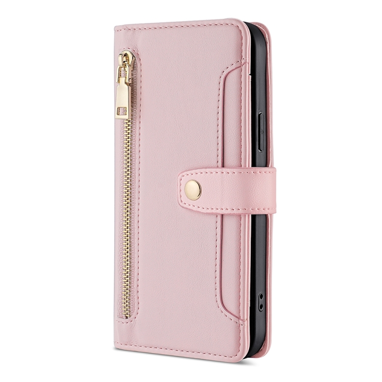 Funda de Cuero para Sharp Aquos R8 Pro Sh-51 Lite con Cremallera Cruzada y Textura de Oveja (Rosa)