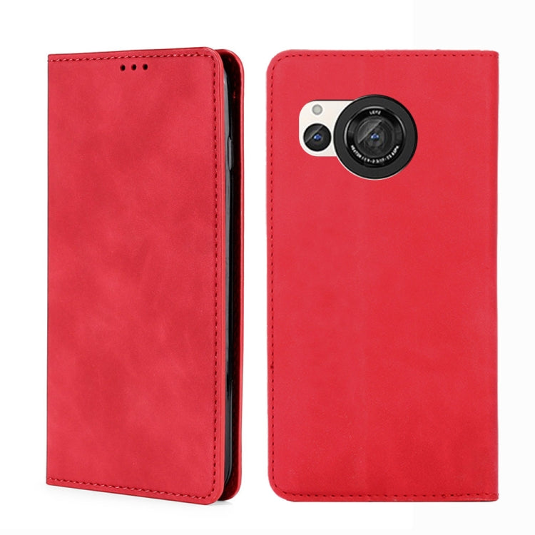 Funda Magnética de Cuero para Sharp Aquos R8 Pro SH-51 Skin Feel (Rojo)