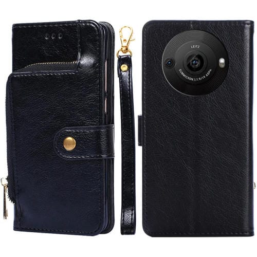 Funda de Cuero con Cremallera para Sharp Aquos R8 Pro Sh-51D para Teléfono (Negro)