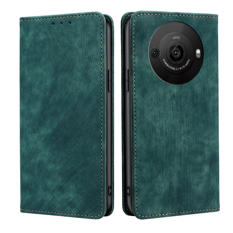 Funda de Cuero Magnética para Sharp Aquos R8 Pro Sh-51D con RFID y Cepillo Antirrobo (Verde)