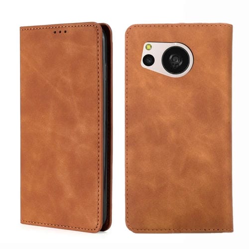 Funda de Cuero Magnética para Sharp Aquos Sense 8 Skin Feel (Marrón Claro)