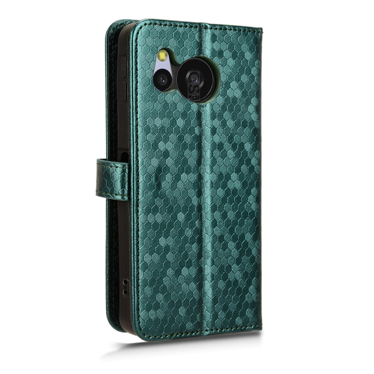 Funda de Cuero para Sharp Aquos Sense8 con Textura de Punto de Panal (Verde)