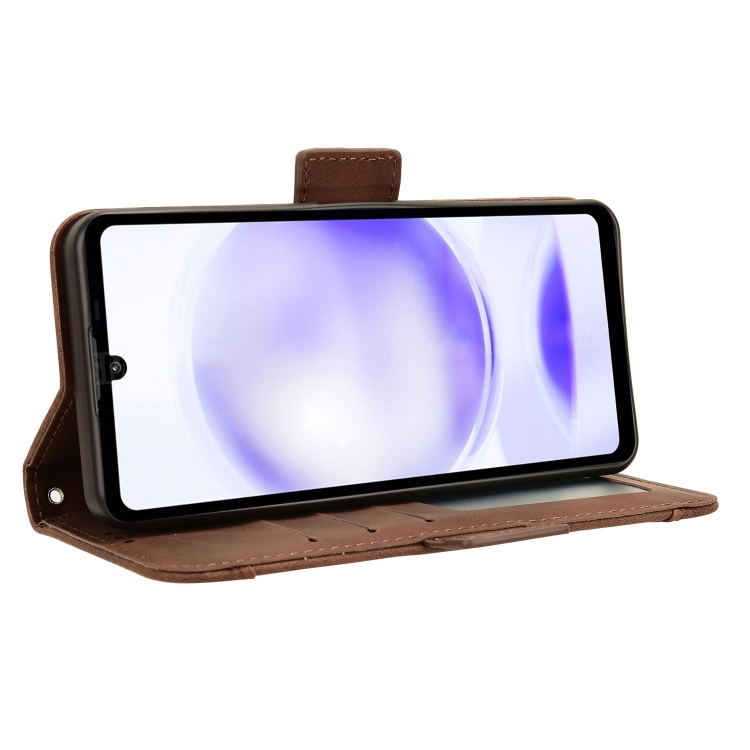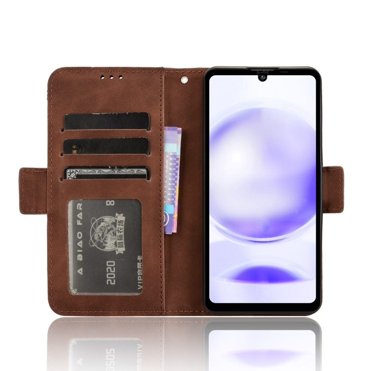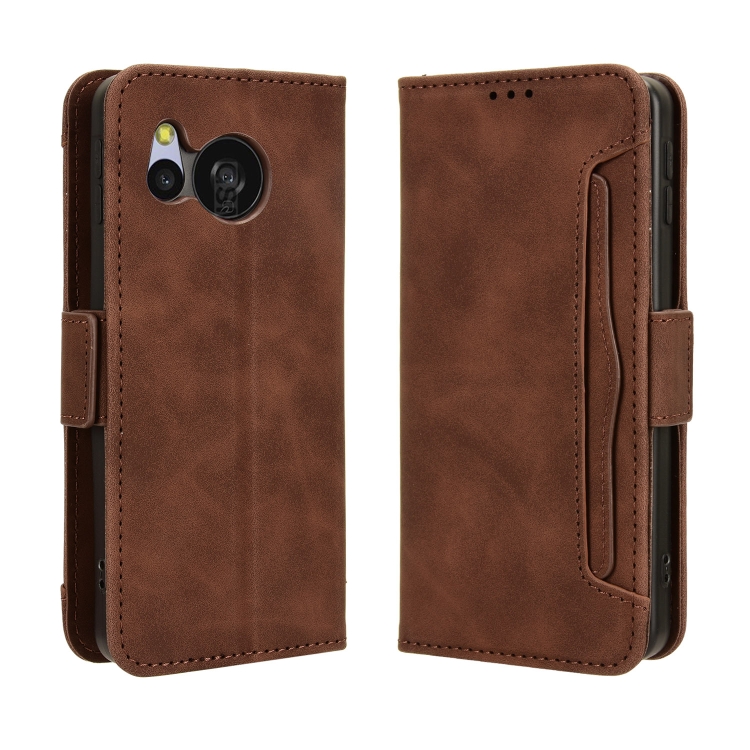 Funda de Cuero para Sharp Aquos Sense8 Skin Feel con Textura de Becerro y Ranuras para Tarjetas (Marrón)