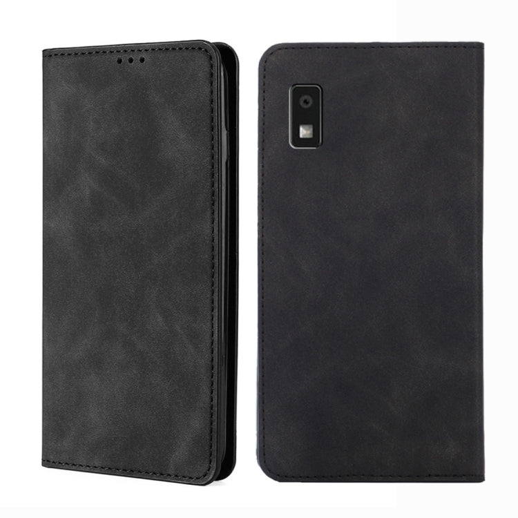 Funda para Sharp Aquos Wish 3 Cuero Magnético con Sensación de Piel (Negro)
