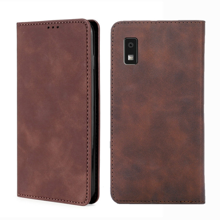 Funda Magnética de Cuero para Sharp Aquos Wish 3 Skin Feel (Marrón Oscuro)
