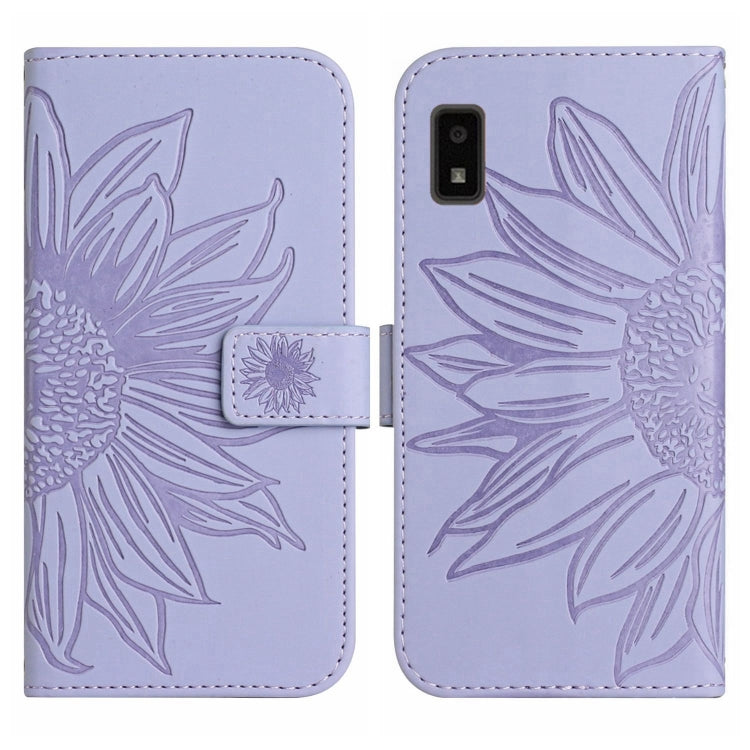 Funda de Cuero Flip para Sharp Aquos Wish con Cordón y Patrón Sun Flower (Púrpura)