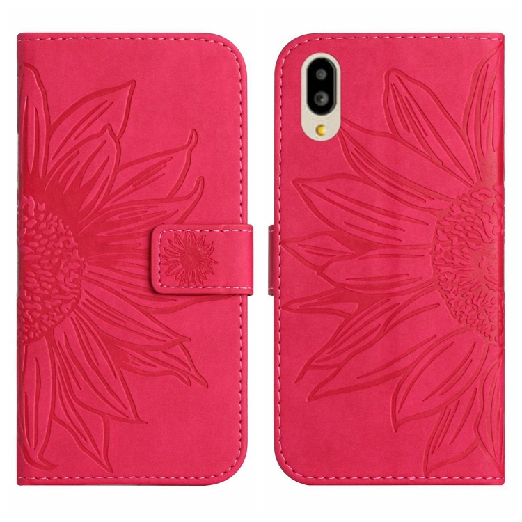 Funda Flip de Cuero para Sharp Simple Sumaho 6 con Cordón y Diseño Sun Flower (Rose Red)