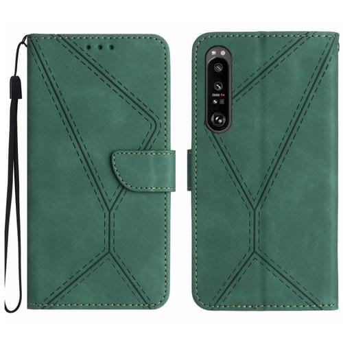 Estuche para Sony Xperia 1 III de Cuero con Costuras en Relieve (Verde)