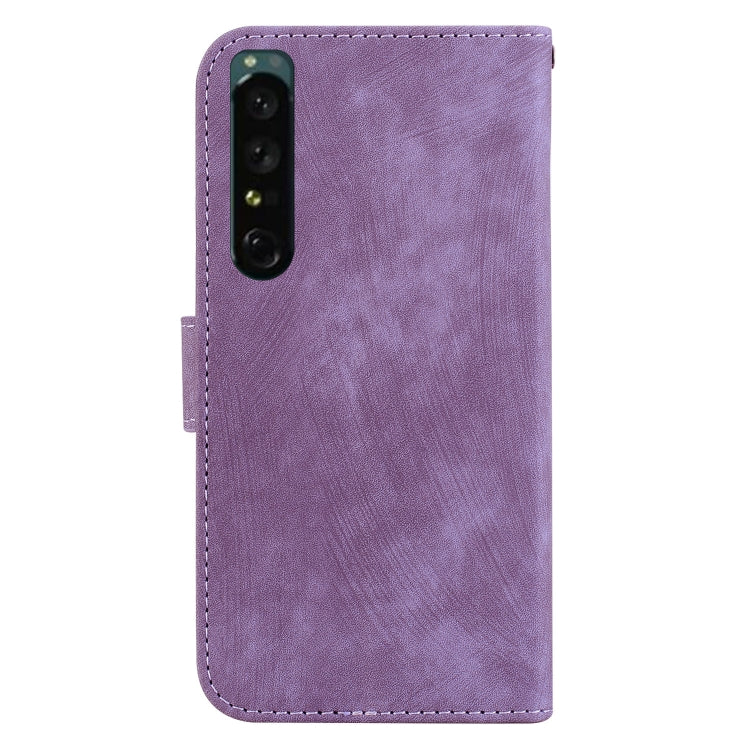Funda de Cuero para Sony Xperia 1 IV con Relieve Little Tiger (Púrpura)