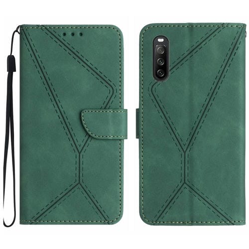 Estuche para Sony Xperia 10 IV de Cuero con Costuras en Relieve (Verde)