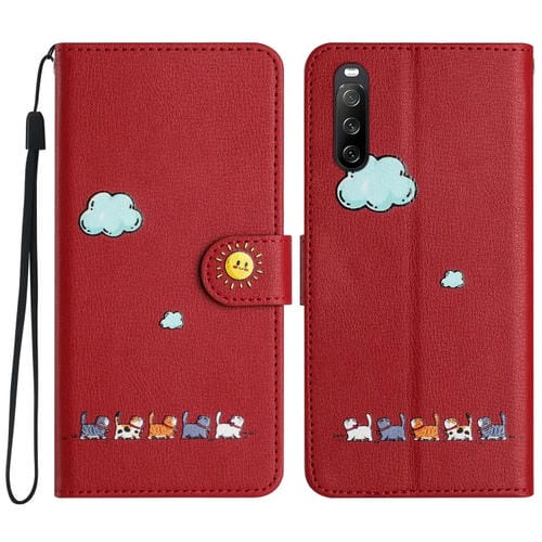 Funda de Cuero Sony Xperia 10 Iv con Gatos de Dibujos Animados (Rojo)