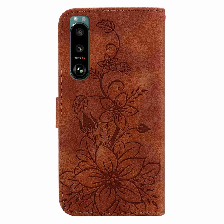 Funda de Cuero en Relieve para Sony Xperia 5 III Lily (Marrón)