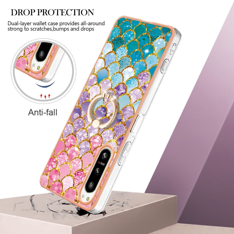 Funda TPU Galvanoplastia IMD con Anillo para Sony Xperia 5 IV (Escamas de Colores)