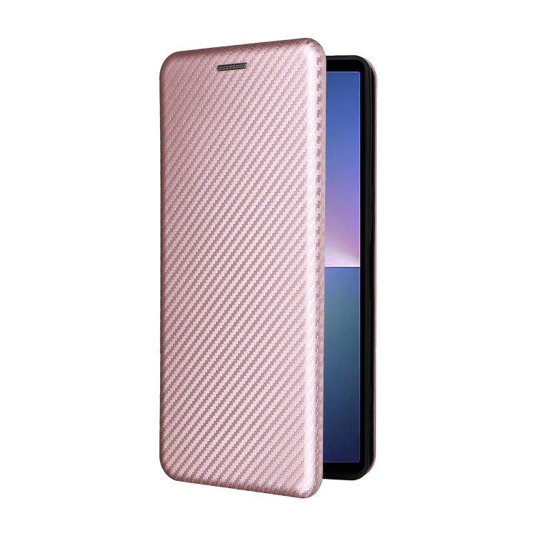 Funda de Cuero con Tapa para Sony Xperia 5 V (2023) con Textura de Fibra de Carbono (Rosa)