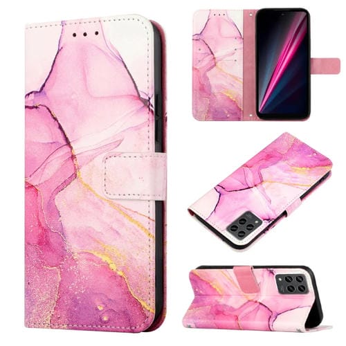 Estuche de Cuero para T-Mobile Revvl 6 Pro 5G Pt003 con Tapa Patrón Mármol (Rosa Púrpura Dorado)