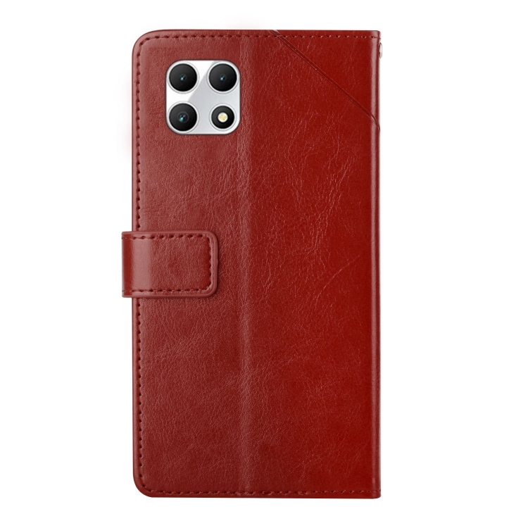 Funda de Cuero con Tapa para T-Mobile Revvl 7 5G con Patrón en Forma de Y (Marrón)