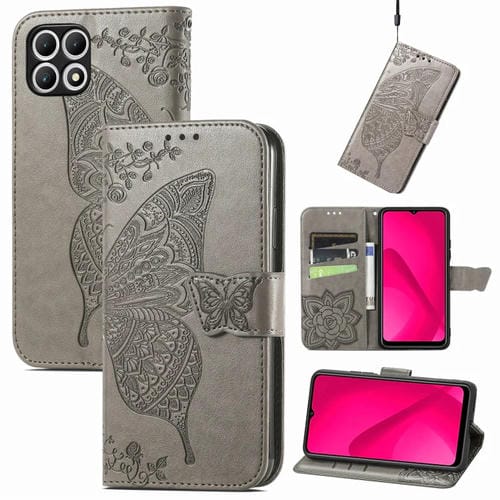 Funda para teléfono T-Mobile T Phone 2 Pro 5G cuero relieve flor y mariposa (Gris)