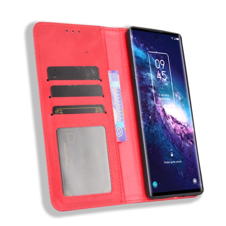 Funda Horizontal Flip para TCL 20 Pro 5G Hebilla Magnética Retro Crazy Horse con Soporte y Ranuras (Rojo)