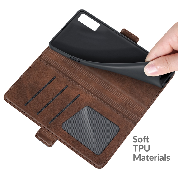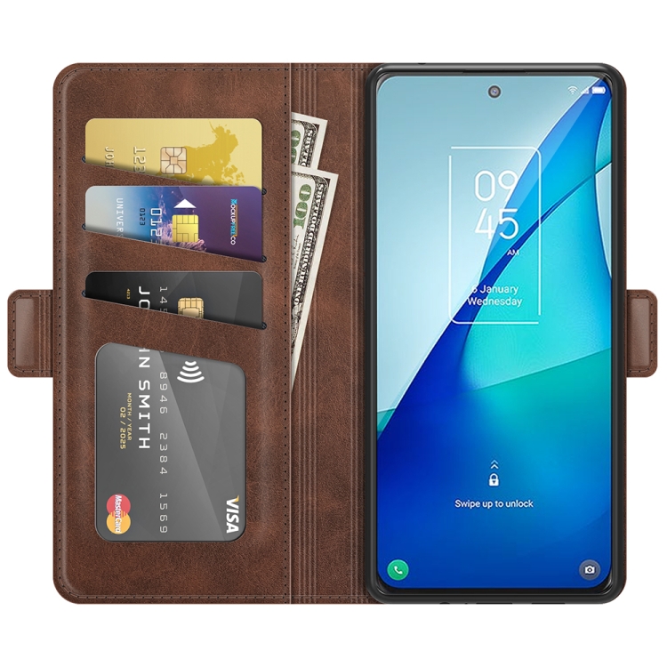 Funda Cuero para TCL 20S / 20 5G / 20L con Hebilla Magnética Doble Cara Horizontal (Marrón)