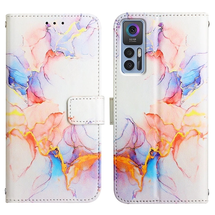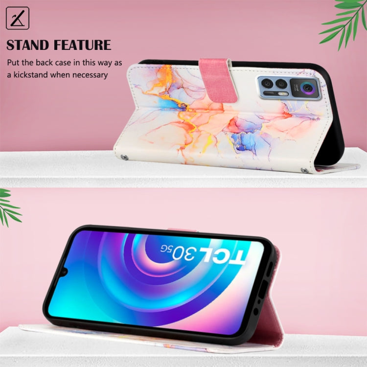 Estuche de Cuero con Tapa para TCL 30 5G/30+ 5G Pt003 con Patrón Mármol (Blanco)