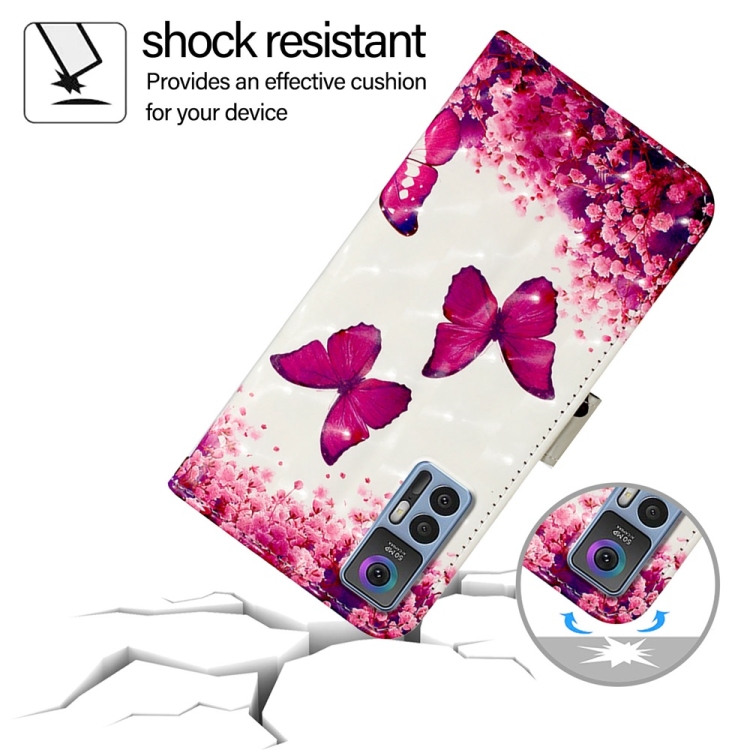 Funda de Cuero para TCL 30 5G con Tapa Horizontal y Pintura 3D (Mariposa Rosa)