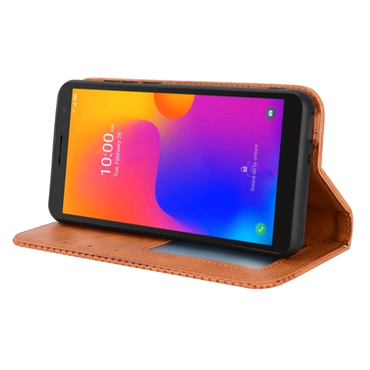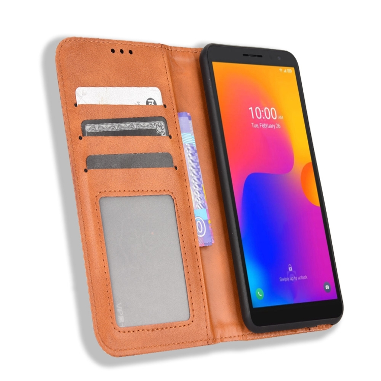 Funda para Tcl 303 y Alcatel 1B 2022 con Hebilla Magnética y Cuero Crazy Horse (Marrón)