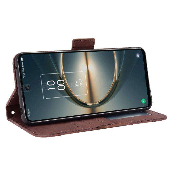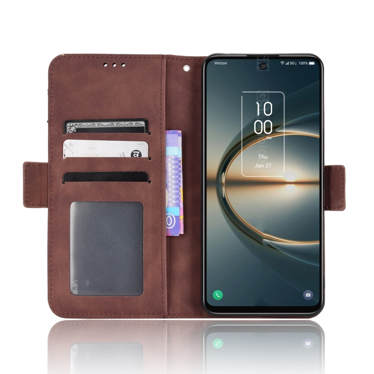 Funda para TCL 30V 5G Cuero Patrón Pantorrilla Protección (Marrón)