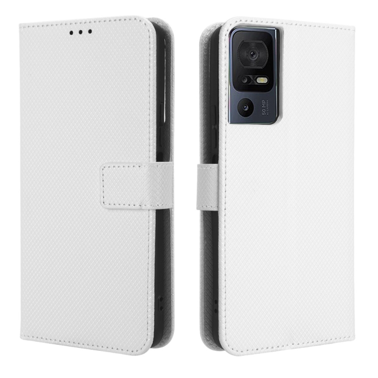 Funda para TCL 40 Se de Cuero con Textura de Diamante (Blanco)