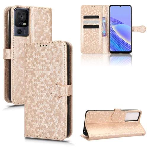 Funda de Cuero para TCL 40 Se con Textura Punto de Panal (Oro)