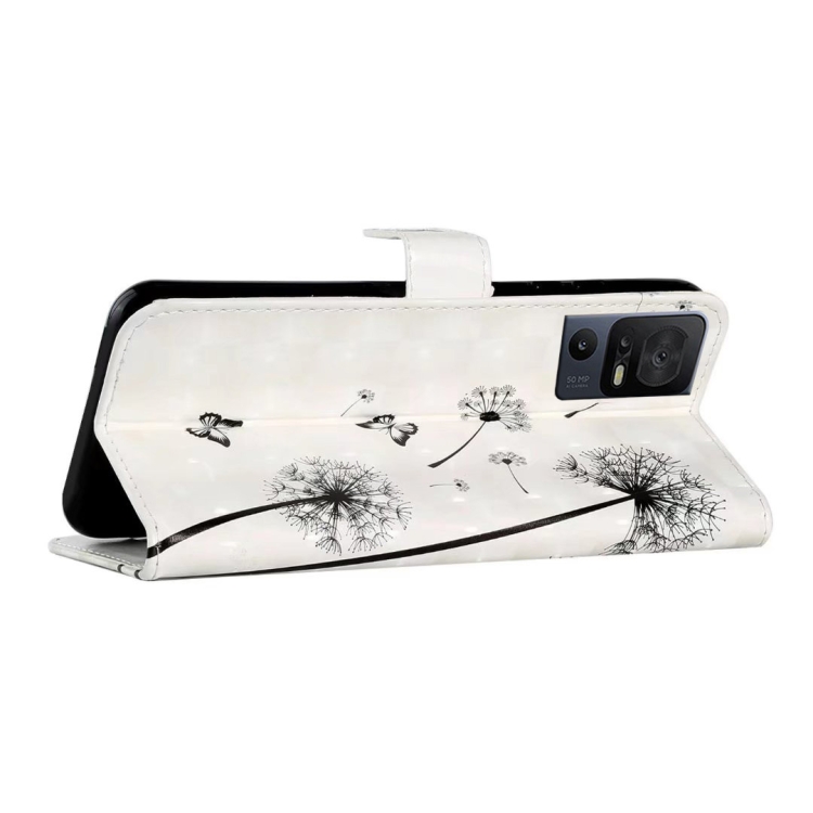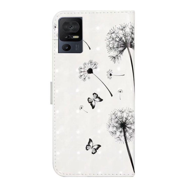 Funda para TCL 40 Se de Cuero con Dibujo 3D en Relieve al Óleo (Pareja de Diente de León)