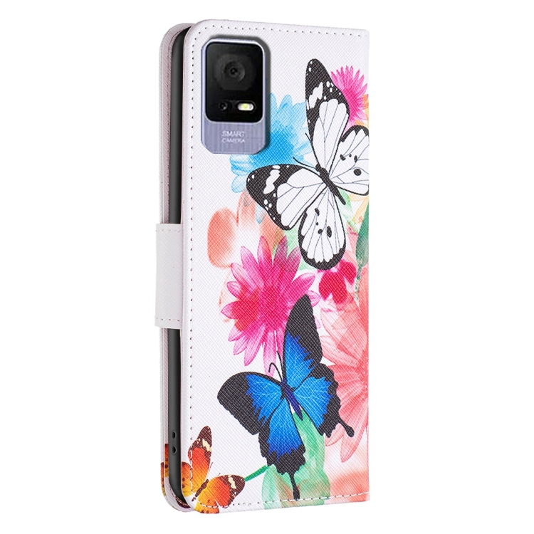Funda de Cuero para TCL 405 con Patrón de Mariposas y Colores