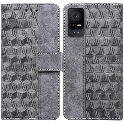 Funda de Cuero para TCL 408 con Relieve Geométrico (Gris)