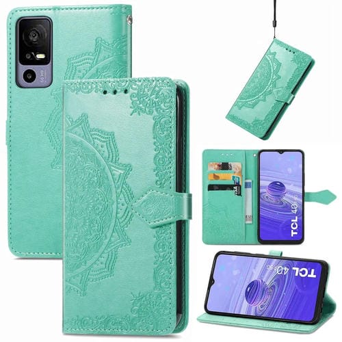 Funda de Cuero para TCL 40R Mandala Flower en Relieve (Verde)