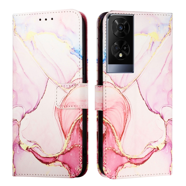 Funda de Cuero con Tapa para TCL 50Xe 5G Pt003 con Patrón Mármol (Oro Rosa)